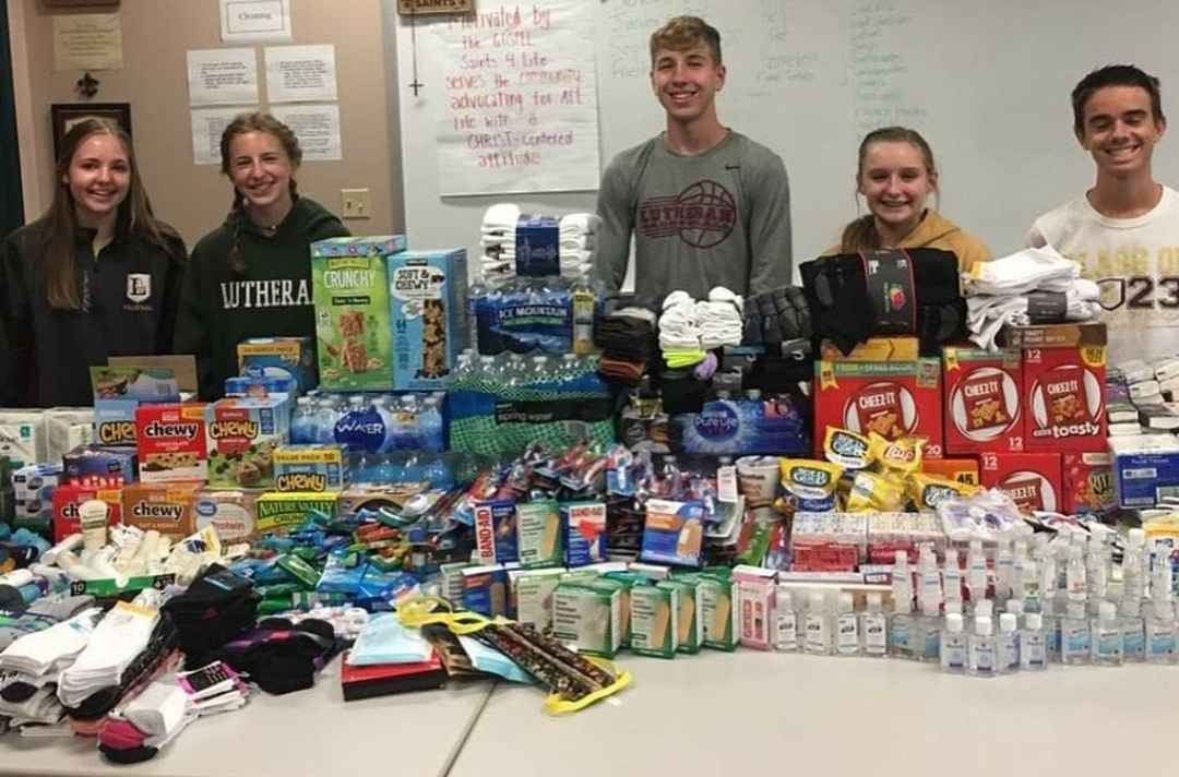 In the month of September, the Saints 4 Life Group at Lutheran High School decided to hold a collection drive for homeless people in Indianapolis. The drive was part of the school’s homecoming week festivities. Students were asked to bring in a variety of items—mostly personal hygiene products and food. The care packages they created with these items were designed to serve the immediate needs of someone who is homeless and to travel easily.